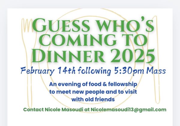 Guess Who’s Coming to Dinner is back! Join our Second Saturday on February 14th following 5:30pm Mass.